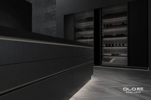大师佐藤可士和的这款联名“处女作”,产品定位偏向高端,这从岩板材质的台面、层次搭配的墙面、肤感UV的工艺、恰到好处的灯光等细节就能捕捉到其高奢气息。比如皮革红酒展示柜区域,专为红酒收藏而设计,打造出一个个更开放的、有趣的奢居空间。