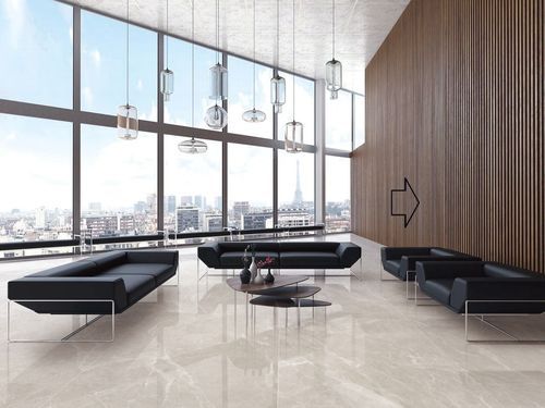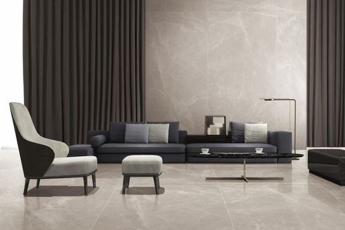 The open-style home decoration design is most suitable for large slab tiles. The bright glazed surface of "Lightning Grey" is not only convenient to take care of, but also brings a broad view to the space.