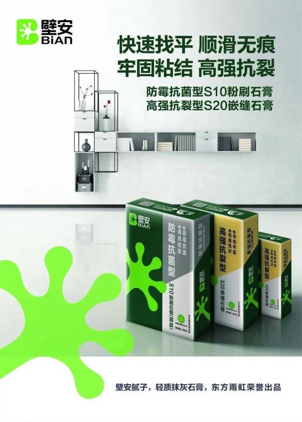 腻子作为健康家居的重要组成部分,在墙面装饰中使用范围广,是家居装修隐蔽工程的基石,其安全环保性备受大众关注。壁安依托东方雨虹先进的管理理念、精益生产体系、卓越的研发及应用技术团队,以多元渠道布局为基石,不断扩大雨虹产品在建筑粉料市场的占有率,提升品牌影响力,致力于成为建筑粉料领域最有价值企业。