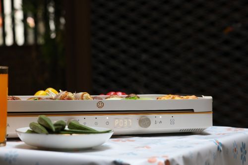 最让人头疼的油烟问题也不用担心,嗨翻盘恒温的煎烤模式,将烧烤的温度很好地控制在出烟点之下,即使是在没有吸油烟机的客厅或者小花园烧烤,也几乎没有油烟。