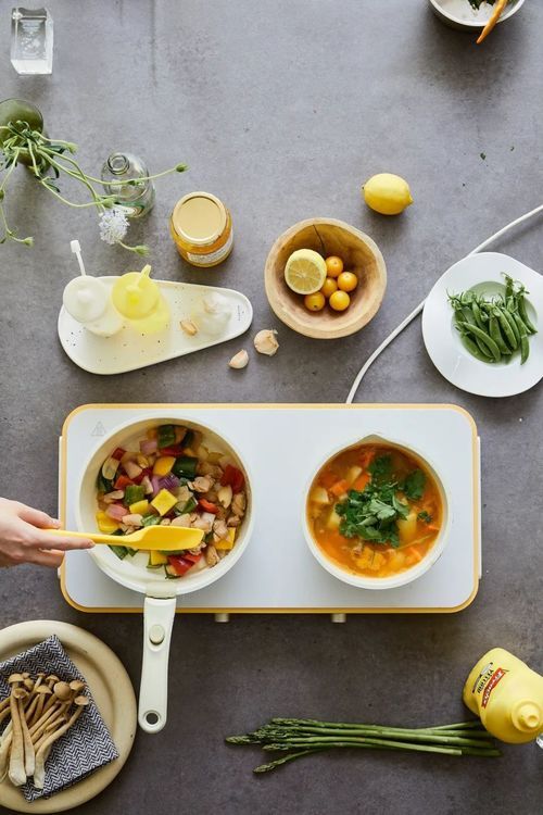 把独奏嗨翻盘上的大烤盘拿掉后,就变身实用加热平台,家里的各种锅具放上去就可以直接使用了。