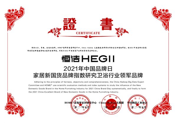 5月9日,HOME家饰界联合China Hadoop大数据主办的“2021第二届家居新国货品牌指数研究”(以下简称“研究报告”)重磅发布:恒洁继2020年后,恒洁与华为、格力等品牌再度荣登该报告推荐榜单,恒洁也再度成为卫浴行业唯一的“2021年中国品牌日家居新国货卫浴行业领军品牌”!