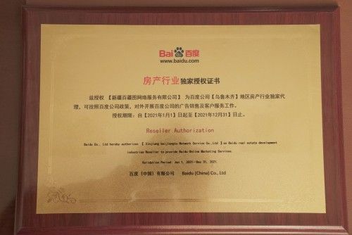 会上,百度公司渠道销售发展部正式授权新疆百疆图网络服务有限公司为乌鲁木齐地区房产行业独家代理商及百度房产平台乌鲁木齐地区独家运营商,并颁发授权证书。