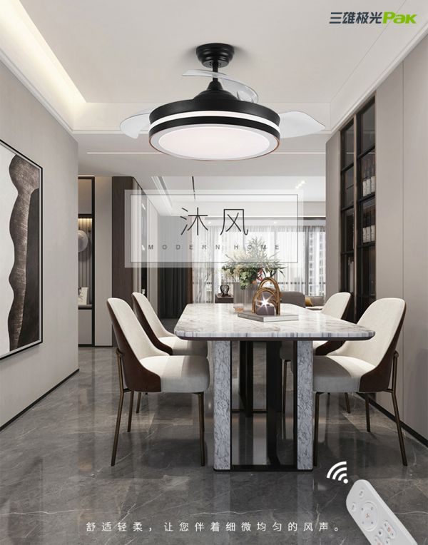 如果你担心风扇灯的颜值的话,那可大大没这个必要!现在风扇灯的外观琳琅满目,各种风格的都能找到适合你家的。实在对风格拿捏不准的话,可以选择简约型风扇灯,如下面的【沐风】、【凌风】。