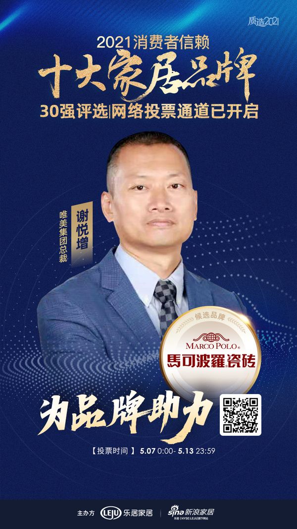 由乐居家居与新浪家居主办,中国建筑装饰协会、中国建材流通协会、中国建筑卫生陶瓷协会、全国工商联家具装饰业商会、中国木材与木制品流通协会、中国智能家居产业联盟、北京家居协会、北京家具协会共同指导,「寻找优质消费者品牌--2021消费者信赖十大家居品牌-品类30强评选」活动于4月26日正式启动。其中陶瓷、厨电、卫浴三个品类的网络投票评选于5月7日0:00—5月13日24:00进行。