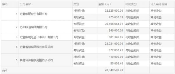 公告显示,自2021年1月1日至本公告披露日,欧普照明股份有限公司及控股子公司累计收到与收益相关的政府补助共计人民币约7855万元。