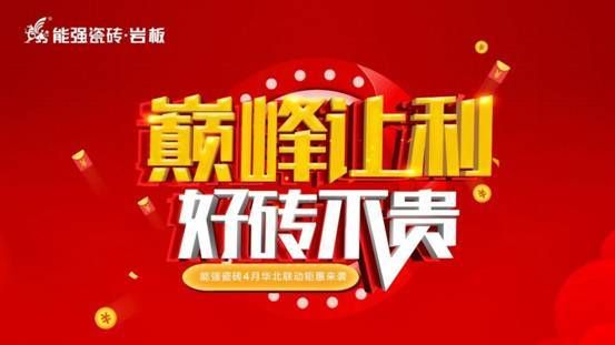 踏梦而行,赢战终端,2021年4月15日—5月6日正值春季好时光,装修正当时,能强瓷砖率先出击,以“好砖不贵·巅峰让利”为主题带动能强华北区域2021春季热销态势,多店多渠道定点爆破,决战终端。