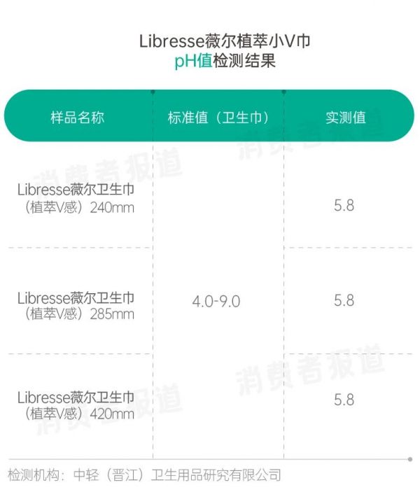 实测结果显示,Libresse薇尔植萃小V巾的pH值为5.8,属弱酸性,贴合人体皮肤环境,安全无伤害。
