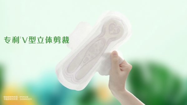 Libresse薇尔小V巾独创Secure Fit™贴合专利技术,采取的V型立体剪裁动态更贴合女性身体曲线。