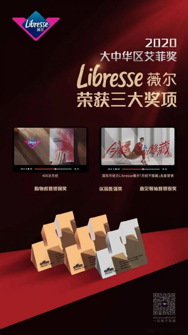 此前,Libresse薇尔凭借#月经不隐藏#系列营销,斩获全球品牌传播界“奥斯卡”SABRE Awards最佳年度营销案例及3项金奖、大中华区艾菲奖3项大奖等多个重量级奖项。