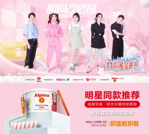 正因如此,阿尔贝娜天然具有感性、细心、柔软和轻快的品牌内涵,并且一直鼓励女性消费者勇于改变家居生活环境,所以受到了德国96%的受访妈妈的喜爱,成为了女性喜爱的涂料品牌。同时阿尔贝娜成为《闺蜜好美》节目特别赞助商,Alpina尊典墙面漆受到节目明星喜爱,并倾情推荐。