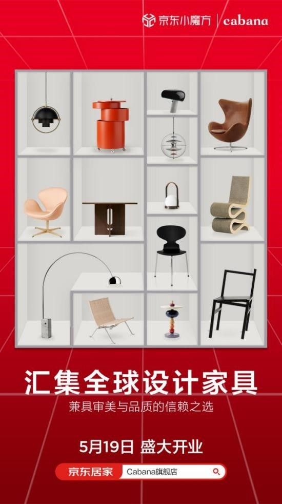 5月19日,享有“家居界的LVMH”美誉的高端家具品牌集合店Cabana入驻京东,同期在上海开业的Cabana静安嘉里中心店、Cabana安福路话剧中心店,也同步链入Cabana京东旗舰店,实现连锁品牌的全渠道开业,为即将到来的京东618助阵。三店开幕期间,消费者登陆Cabana京东旗舰店,就可云逛30多个国际顶尖家具品牌,还将购买到Verpan Moon吊灯、Gubi Multi-Lite吊灯、USM 升降桌等首发新品,并获得主题直播、场景购、设计服务、分期服务等独特体验。