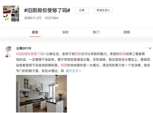 “油烟大”、“空间小”、“橱柜设计鸡肋”、“储物空间不足”……这些都是近几日微博热议话题#旧厨房你受够了么#中,网友吐槽的重点。为什么不换个新厨房呢?不少人表示:顾虑太多了。