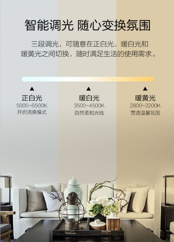 立足健康照明,正泰照明辉丽系列风扇灯,采用健康照明光源,光线柔和不刺眼,有效防蓝光防频闪,显色指数≥80Ra,明亮舒适,还原物体本色。白、暖白、暖黄三档调光,安装在客厅、书房,办公学习时调成明亮清澈的白光,呵护眼睛;安装在客厅、餐厅,用暖白光勾勒出浪漫的氛围;安装在卧室,睡前调成温馨暖黄光,有助于酝酿睡意,助你一夜安眠。