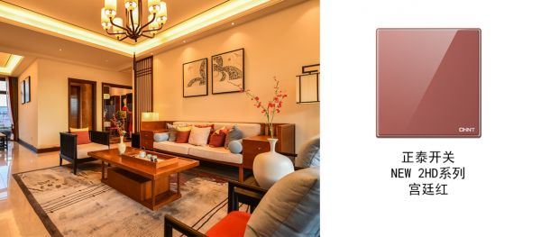为高端中式、新中式家装定制,正泰NEW2HD系列宫廷红开关,方正大气,美且端庄。面板玲珑剔透,不仅为中式的古朴典雅增加了雍容华贵之感,更适合在新中式家装中展现恰好处的现代感,细节之美完美地融合于大气之中。