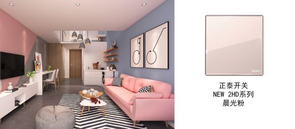 但全屋的少女粉,粉嫩甜蜜,难免落于俗套。可以稍作调整,减少一些粉色居室面积所占比,添加一些别致具有设计感的细节,便可以轻松的打造一个柔而不失质感的家居空间。正泰NEW2HD系列晨光粉开关,让普通的墙面忽然多了几分可爱俏皮,让整个房间显得轻盈而又有品质