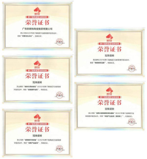 2021中国陶瓷行业新锐榜揭晓,冠珠瓷砖独揽5项大奖