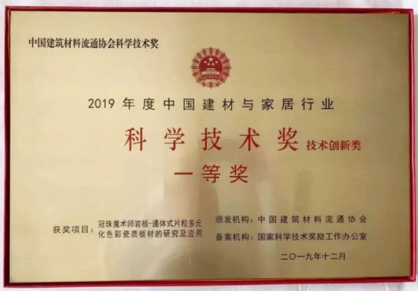 ■研究项目荣获“2019年度中国建材与家居行业科学技术奖技术创新类一等奖”、