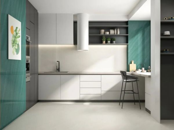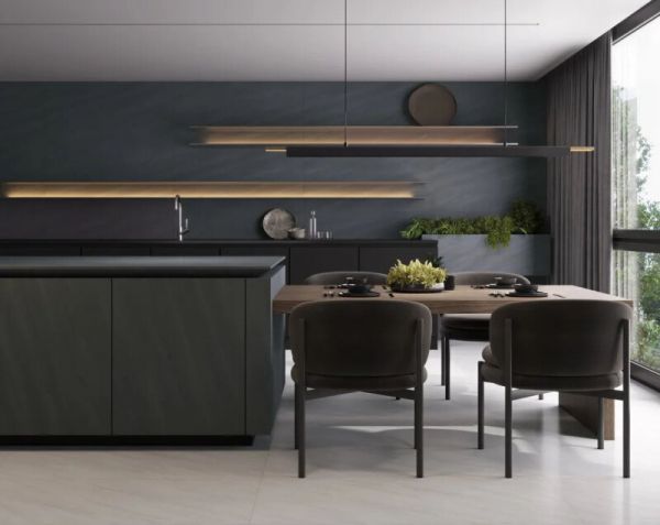 材质对设计的好坏与否,起到至关重要的作用,冠珠魔术师岩板,兼具抗污耐磨、多重光感、吸水率低等优势,被应用到厨房、台面等各个方面,打造简洁易清理的饮食空间。
