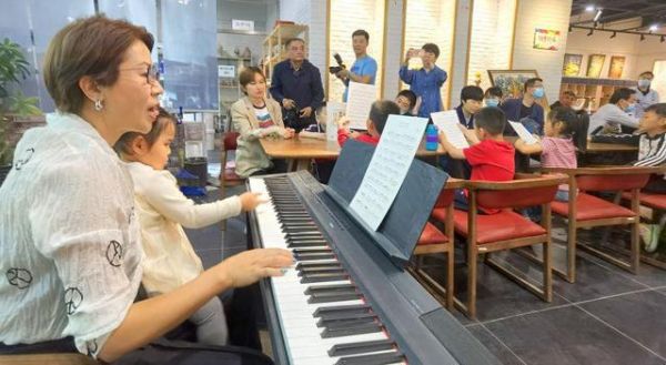 业之峰装饰集团公益爱心大使李艳辉女士教孩子们一起学唱画展主题童谣《勤俭节约幸福家》