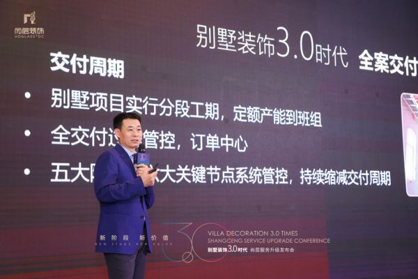 交付一直以来都是别墅装饰过程中的痛点,能够在15年的时间在全国不去14城18家分公司,并且在多个城市做到行业第一,尚层装饰在交付层面的把控自然有着发言权。尚层装饰集团交付管理中心总监黄世明在“别墅装饰3.0时代-尚层交付体系升级发布”时表示,基于别墅装饰3.0时代的特点,以及全面支撑实现尚层别墅装饰全案设计的出发点,尚层超越一般装企的工程、产品等条块分割的弊病,将实施端改组为以向客户和项目交付负责、以按期顺利交付为目标、以交付管理中心为组织核心的全生命周期交付3.0管理体系。“在坚持做好现场实施管理,充分发挥项目经理负责制的基础上,实现别墅全案交付管理体系的升级,通过5阶段、6节点的关键管控,持续缩短交付周期;同时别墅标准工艺也在原有66项别墅专有工艺的基础上,再次对四大类工艺进行升级,持续提升品质,并且增强订单中心职能,最终实现别墅项目交付全生命周期管控;交付岗位的人才建设也将是尚层下阶段的提升重点,建立尚层工匠人才信息库,对关键教辅岗位进行选拔、培养和认证,不断尝试班组制等新型管理模式,建立交付管理岗位的职业晋升体系,组建尚层工匠学院,都将对别墅交付体系的人才建设期到关键作用。”随后,黄世明还对尚层全案产品体系建设、售后服务体系建设、尚层管家服务体系,以及全案交付的数字信息化管理进行了分享,并对别墅全案交付未来工业化、自动化系统、响应国家碳中和发展战略的方向进行了趋势展望。