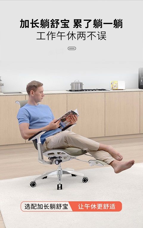 8.“椅子秒变午休躺床!”——加长腿托,小腿向上更舒适