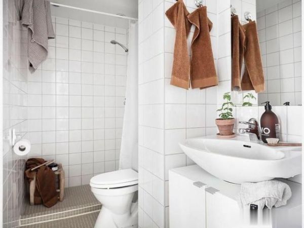 不管卫生间多小,都要尽量想办法做干湿分离。因为淋浴区洗澡的时候,水花和蒸汽会四处喷溅。搞得整个卫生间湿漉漉,地板湿滑容易滑倒,潮湿的环境也容易滋生细菌、发霉发黑。