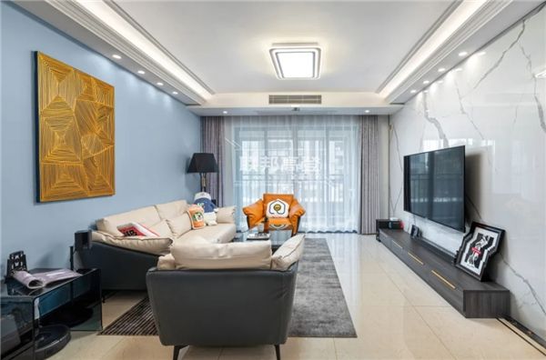 为保持轻奢风整洁简单的观感,联邦高登作为高端全屋定制品牌代表,其以客户需求为中心,针对客厅选用的家具以低矮型为主。放眼望去尽是通透视野,沙发墙与电视背景墙通过色彩、材质对比打造柔和视觉效果,而一字型电视地柜则以简约造型为客厅点睛。以“精简、便捷、美”三个要素作为电视柜的挑选指标,一字型抽屉电视柜既能摆放客厅琐碎杂物,又能够渲染别致轻奢气质,成就亮眼一笔。金沙拉手设计能够充分满足屋主对线条装饰的喜好,为柜体带来精致感。