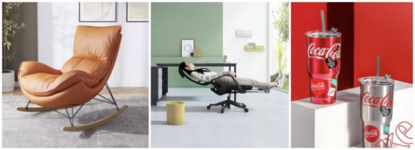 丽巢网红摇椅沙发、圣奥午休电脑椅、名创优品百亿补贴可乐杯