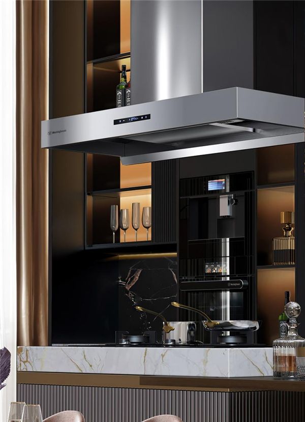 西屋油烟机TA05,采用蒂森克虏伯进口304不锈钢,手工打造1毫米厚度钢板,在质感和美观度上优于普通的油烟机,针对不同的烹饪需求设置25档变频控速,具有21立方每分钟抽风量,870Pa静压,爆炒的大量浓烟也能被快速吸走,在西式的开放式厨房中做中式菜肴也不被油烟所扰。