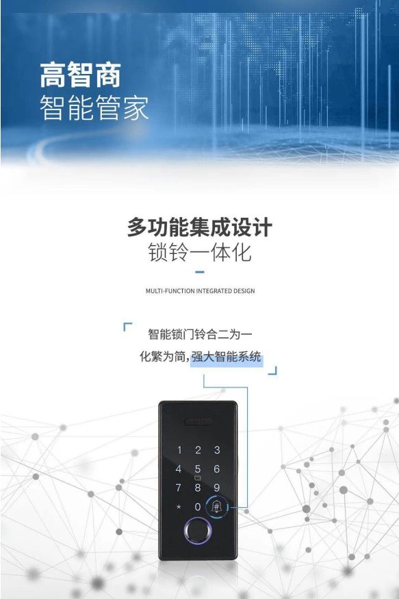 国内入户门标准尺寸不一,设计上也风格各异,传统手执式智能锁也影响入户的形象,如果在传统入户门上外接智能门铃等设备,安装时费时费力且难度较大,安装后整体美观性也很难如人意。