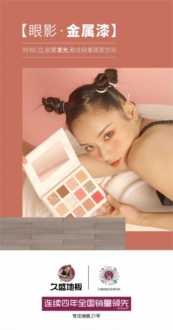 久盛【眼影·金属漆】新品地板面层呈现的金属质感让家也能拥有微闪妆容,更适合现代简约、轻奢风格。