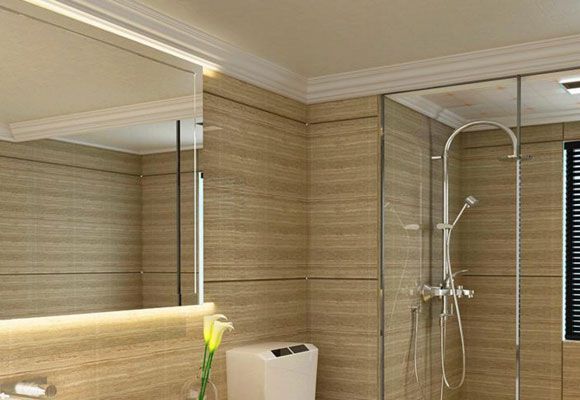 2、考虑门框门槛的挡水性:考虑好卫生间的玻璃隔断是否有门框可以挡水,如果没有还需专门安装门槛石,一般门槛石应高出地面1.5cm—2cm,否则淋浴水从门下流出,就不能达到干湿分区的目的,易造成不便。需要注意,千万不要用下滑道,因为滑道里面积水和灰尘很难清理,时间长了会发臭。