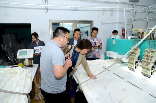 在步入工厂后,探访团发现雅绣的工厂整然有序,每一个生产环节都井井有条,目前,雅绣产品以墙布为主,其刺绣产品在市场中十分受欢迎,平均交付周期10-15天,并且能够提供定制化服务,最大程度保障经销商销售。