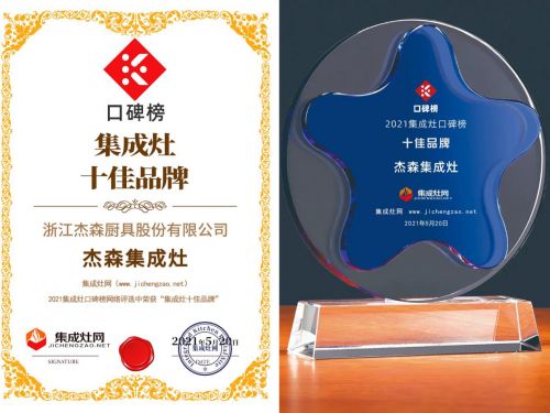 再添荣耀!杰森再度荣获“2021口碑榜集成灶十佳品牌”