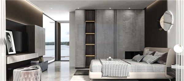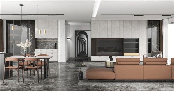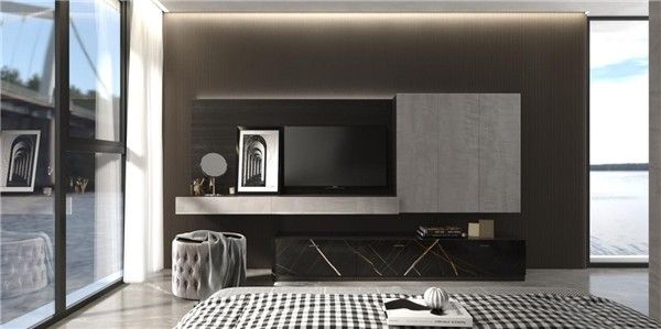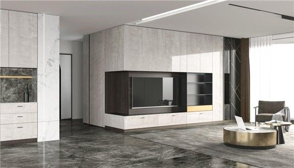 悬空电视柜与整排三柜组合成一幅几何艺术画,