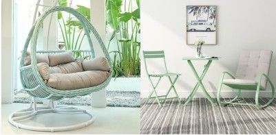 (左:紫叶室内秋千吊篮椅、右:MWH曼好家阳台休闲折叠桌椅组合)