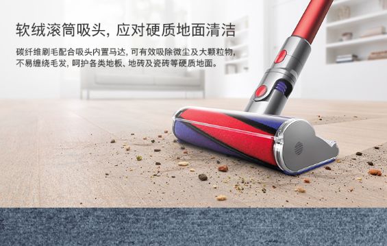 为了使吸尘器可以应对各种场景,比如这次所提到的狗狗掉毛的事情,戴森研发出了软绒滚筒吸头,可以应对硬质地面的清洁,通过碳纤维刷毛再配合上吸头内置的马达,可以有效地吸除微尘及大颗粒物,像是狗狗的毛,很难才会缠绕上去,可以呵护各种地板、地砖以及瓷砖等硬质地面。关于狗狗掉毛怎么办这个问题的解决办法,戴森V11所能发挥的作用远不止于此。