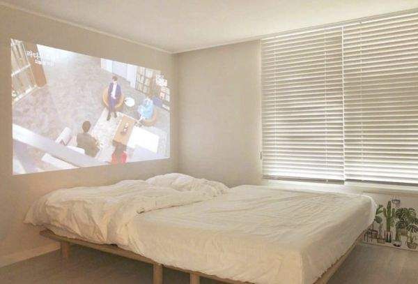 在卧室放置投影仪我们往往会注意到它的摆放,是吊装还是空出一块地方专门放置。这个需要我们深思熟虑,如果你是租房党,那最简单不过,随时随地就可以为你的投影仪收拾出一个合适的位置。如果你成家了,那卧室里的空间可不是你想用就能用的,你还要多方考虑其中的利弊。比如说在安装时,你需要考虑家装的布线走位,各种管线预留。如果你想有更好的观赏体验,还需安装幕布,那更得好好考虑电源的插口部分。