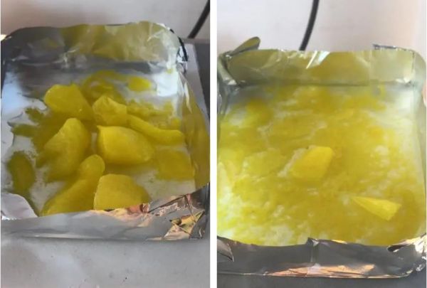 我们在实验室里,进行了“冰块加热”测试。左边锡纸下,是德高隔热砂浆层;右边锡纸下为普通砂浆层。两边放入体积、分量差不多的冰块并进行加热,期间观察冰块的变化。