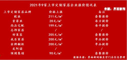 头部知名企业也纷纷被爆出“小动作”。有媒体根据各品牌直营门店信息整理发现,多家上市定制家居企业以不同的方式悄然涨价,其中,欧派、好莱客分别套餐涨价211元/㎡、205元/㎡,我乐家居、金牌厨柜则选择将单品提价200元/㎡,尚品宅配每平提价199/㎡。