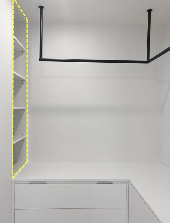 衣帽间如今不打满墙柜子了,加个到顶矮柜,一分为二功能齐全