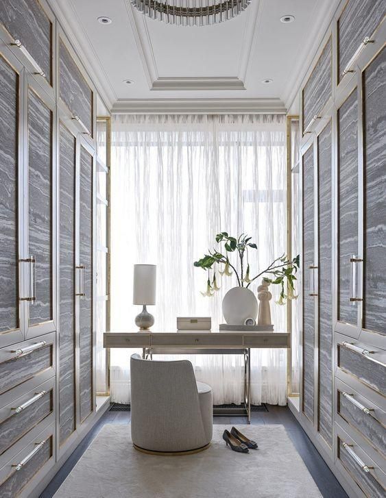 若是衣帽间小于2㎡,这种设计就再合适不过了。一个小空间实现3大功能,实用性杠杠滴。当然,衣帽间内部空间完全足够的,可以根据自己的喜好采用其他不同的设计。