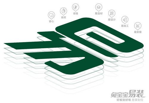 选好板材,就能保证环保、耐用。兔宝宝易装选用兔宝宝优质环保板材,环保等级为E0级,更健康;不用颗粒板,而是用性价比更高的生态免漆板,使柜子不易出现板材变形、起皮气泡等问题,在材料方面兔宝宝易装更有保障。