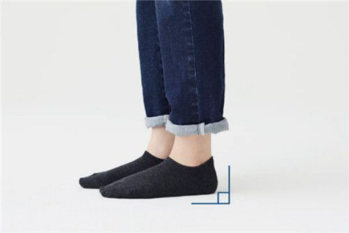 以此灵感,MUJI开发了直角袜系列,设计为直角的袜子与脚跟处恰好吻合,除去了多余的布料,使袜子更加不容易滑动松脱。一经上市就获得了广泛好评,到现在已经有15年历史的直角袜系列,一直是MUJI的畅销人气款。