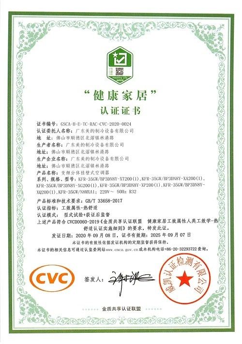 (美的旋耀空调XT200获“健康家居-热舒适”首批认证证书)