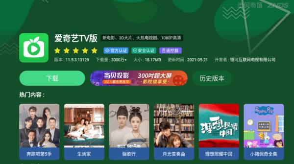 2.在搜索里找到爱奇艺(银河奇异果),爱奇艺享有本次欧洲杯的转播权,弥补了TV端缺乏欧洲杯直播的空缺。