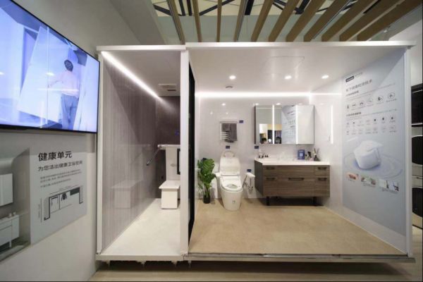 面对国内卫生间入口高低差很大、尺寸大小不一、外观材料需求各异等现状,松下提出卫浴空间整体定制解决方案,希望能以卫浴空间制造商的身份进入市场,并不断扩展业务。在KBC展会上,松下发布了2款整体卫浴产品——和悦空间单元和健康空间单元。这两款卫浴产品是松下与拥有整体卫浴原创技术和制造能力的维石住工合作而成,整体卫浴可根据用户家庭尺寸进行定制,多产品集成提供,具有防水、防霉、实用性佳的优势。此外,离地高度最低可控制在10cm左右,解决行业痛点。