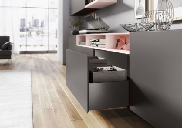 超薄极简外观,YOU美感。AvanTech YOU宽度仅为13mm的纤薄抽屉侧帮,彰显毫不妥协的时尚风范,工作组件完美隐藏,蒂造非凡美学体验。无盖板、无孔位的抽屉外观一气呵成,尽显独特之美。抽屉侧板中的Inlay玻璃加高侧板,更添优雅气质,打破空间隔阂。