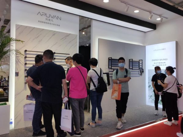 被阿普凡卫浴智能电热毛巾架吸引的观展商